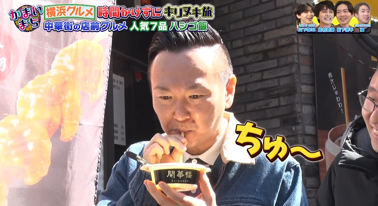 1F「開華楼」でかまいたちの山内さんが大籠包をお召し上がり、美味しいとご好評をいただきました!